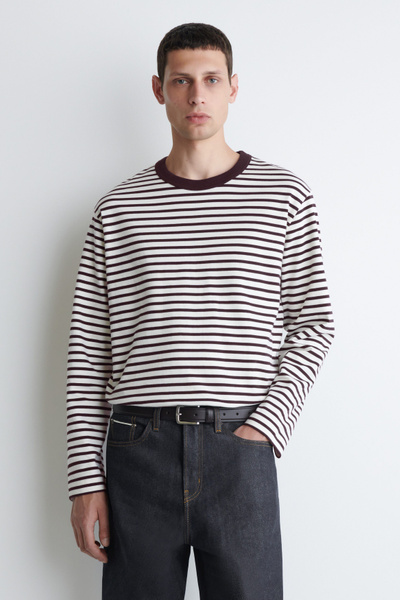 Introducing Wardrobe Essentials: a curation of COS signatures defined for the season. This striped long-sleeved T-shirt is made from interlock cotton, a double-layered knitted jersey that’s soft, durable and warm. It’s cut in a relaxed shape and has a classic crew neck.