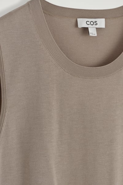 Knitted from a premium recycled mulberry-silk blend, this crew-neck tank top embodies the COS ethos of creating perfected staples. The simple shape and refined black tone encourage thoughtful styling.