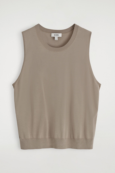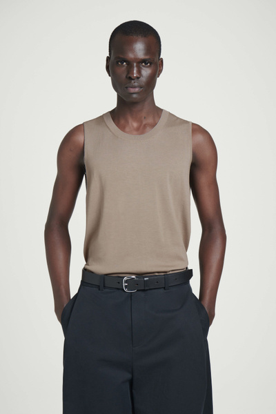 Knitted from a premium recycled mulberry-silk blend, this crew-neck tank top embodies the COS ethos of creating perfected staples. The simple shape and refined black tone encourage thoughtful styling.