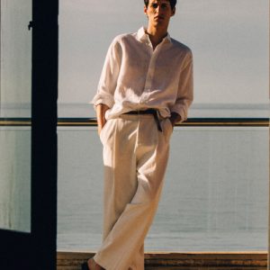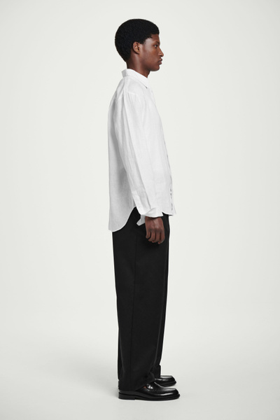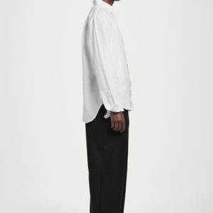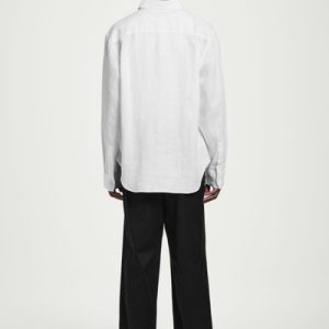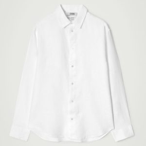 This airy long-sleeved shirt promises to be a wardrobe staple throughout the warmer months. Offered in an enduring white hue, it’s crafted from naturally breathable linen and tailored in a relaxed shape that won’t cling in balmy weather.
