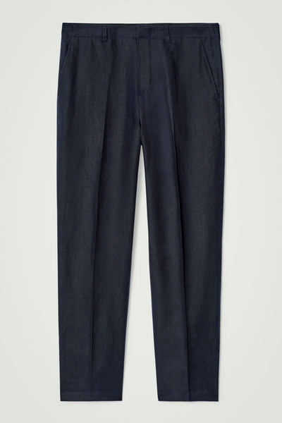 Pared back yet polished, these pants propose a refined take on summer dress codes. They’re crafted from linen that has a light, textured handle and tailored in a relaxed shape with tapered legs and an adjustable tab inside the waist to perfect the fit. Style them as a suit with thematching blazer.