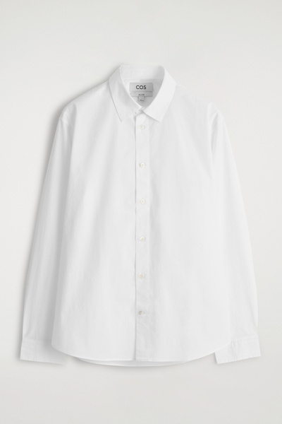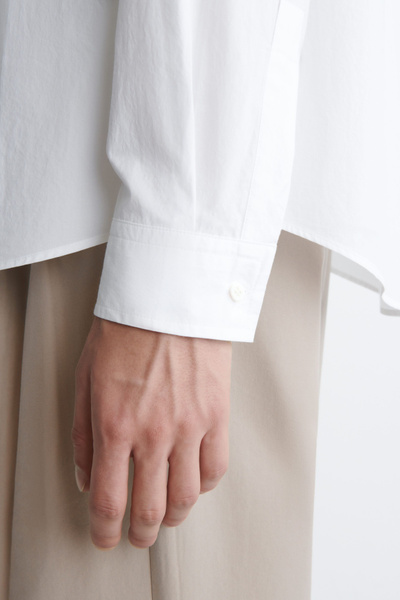 Introducing Wardrobe Essentials: a curation of COS signatures defined for the season. This long-sleeved shirt promises to be a staple piece throughout the warmer months. Offered in a crisp white hue, it’s crafted from naturally breathable Pima cotton-poplin and tailored in a relaxed shape that won’t cling in balmy weather.
