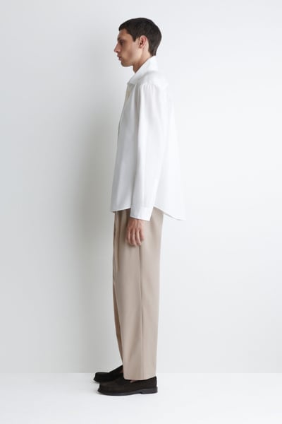 Introducing Wardrobe Essentials: a curation of COS signatures defined for the season. This long-sleeved shirt promises to be a staple piece throughout the warmer months. Offered in a crisp white hue, it’s crafted from naturally breathable Pima cotton-poplin and tailored in a relaxed shape that won’t cling in balmy weather.