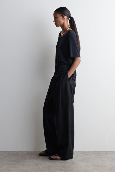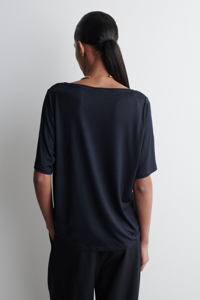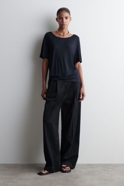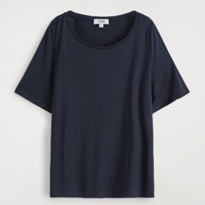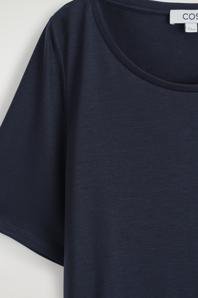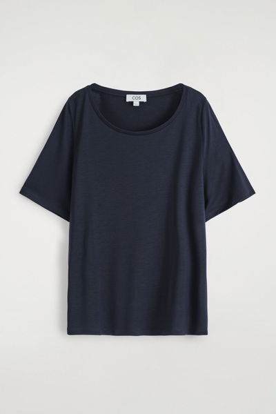 Effortlessly exaggerated, this relaxed T-shirt embodies the COS codes of signature shapes and premium quality. It has been finely knitted from TENCEL™ Lyocell, selected for its fluid drape, and finished with a modern scooped neckline.