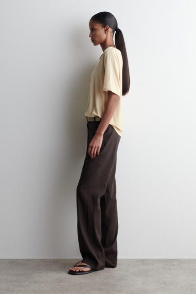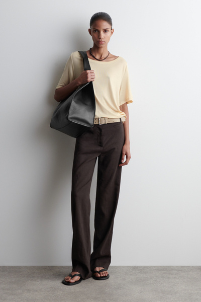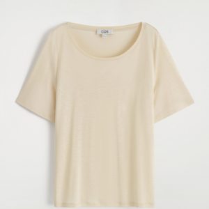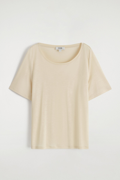 Effortlessly exaggerated, this relaxed T-shirt embodies the COS codes of signature shapes and premium quality. It has been finely knitted from TENCEL™ Lyocell, selected for its fluid drape, and finished with a modern scooped neckline.