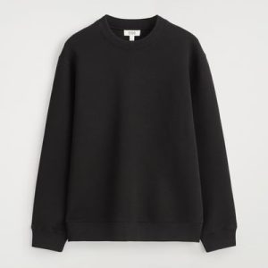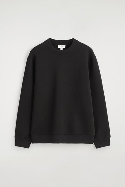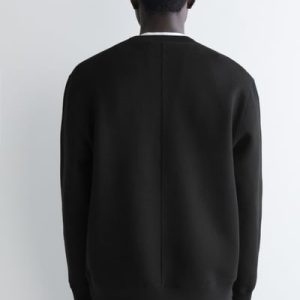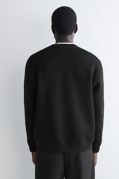 Laid-back shapes and supremely soft fabrics lead a wardrobe that’s primed for the weekend. This modern sweatshirt is cut in a relaxed fit and crafted from spongy cotton-blend scuba with finely ribbed trims. Style it with classic denim.
