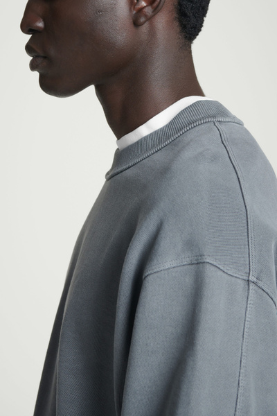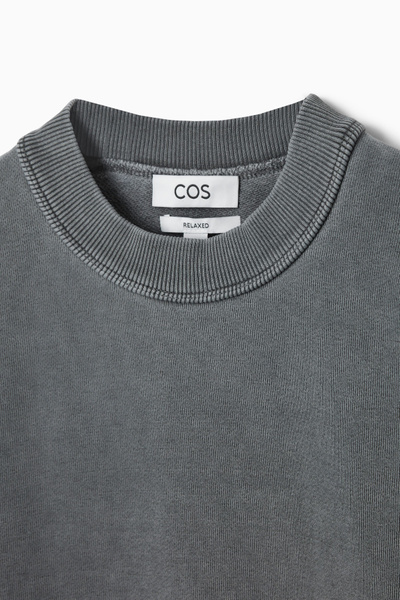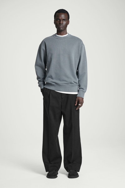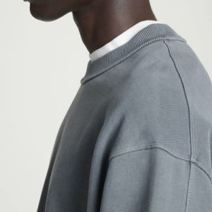 Considered leisurewear is the foundation of the casual wardrobe. Faded to a washed-black hue, it’s crafted from recycled- and organic cotton-blend jersey with a supremely soft hand feel and features a mock neck and ribbed trims. Wear it for casual weekend plans with chinos or denim.