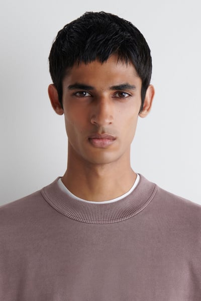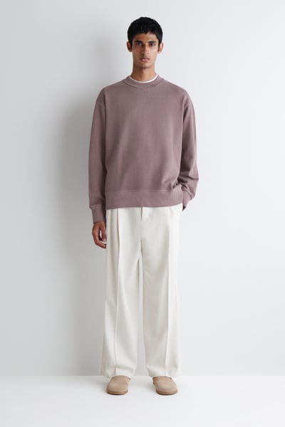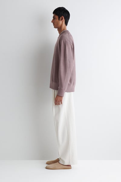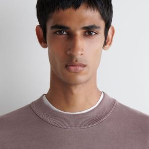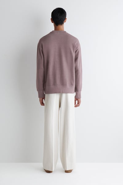 Considered leisurewear is a foundation of the casual wardrobe. Faded to a washed-burgundy hue, this sweatshirt is crafted from recycled cotton jersey with a soft hand feel and features a mock neck and ribbed trims. Wear it on casual weekends with chinos or denim.