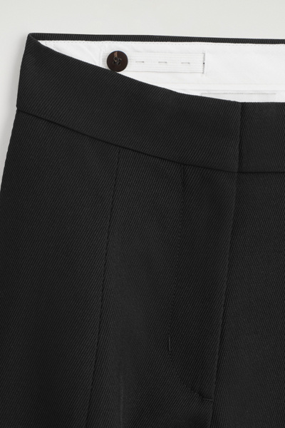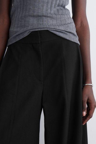 Rendered in a classic black tone, these pants are crafted from wool-blend twill and cut with pleated, wide legs that break at the shoes. The welt pockets nod to suiting codes, while the clean waistband adjusts to create a bespoke fit.