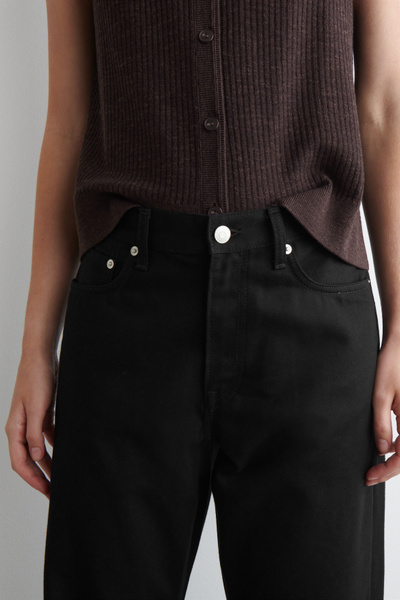 A classic, redefined: the Reprise jeans propose a considered take on a wardrobe signature. Cut in a timeless straight-leg shape, they’re crafted from organic- and recycled-cotton denim that’s washed an enduring black tone and finished with tonal topstitching.