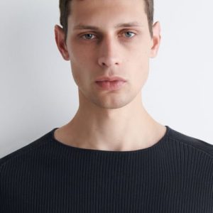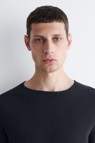 RIBBED-KNIT BOAT-NECK T-SHIRT