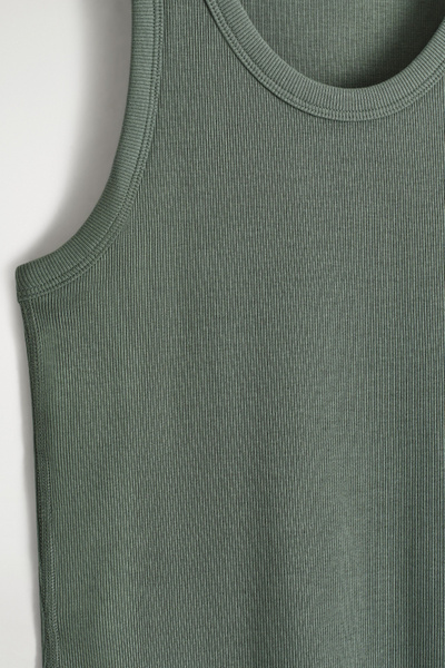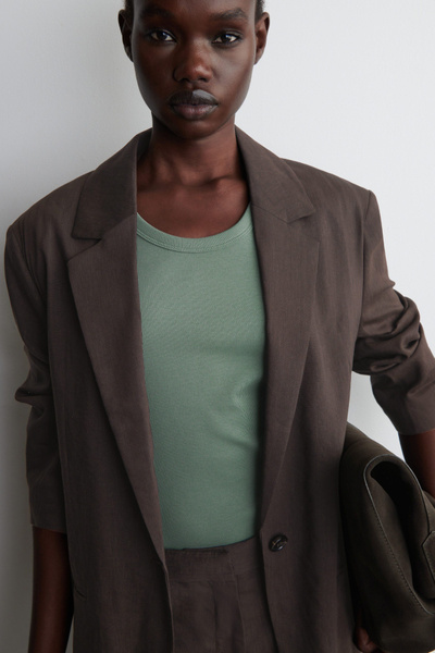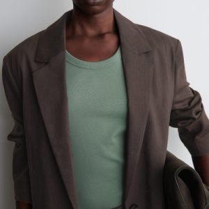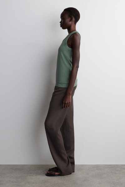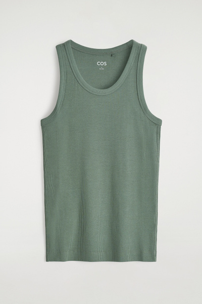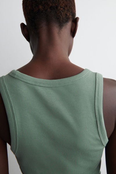 Made from ribbed organic-cotton jersey with a touch of stretch, this slim-fit tank top is an essential on warmer days. It’s offered in a pistachio hue that will complement neutral outfits and has endless styling opportunities – wear it alone or layered under shirts and blazers.