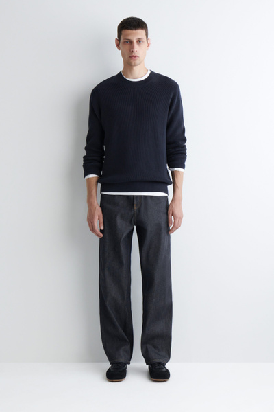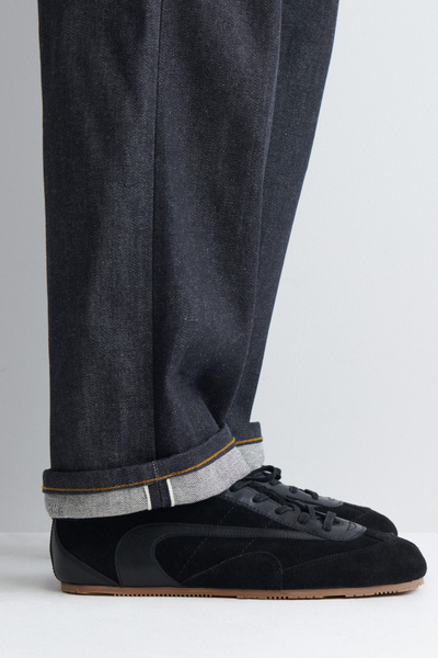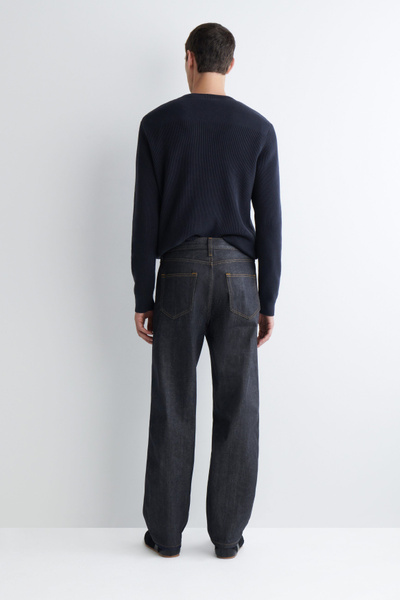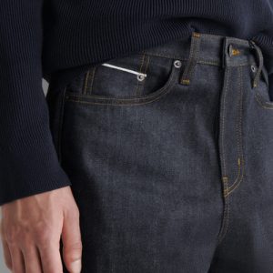 Designed with subtle nods to utility, the Rider jeans are made from 15oz organic- and recycled-cotton denim, which is left raw to retain its deep-indigo color. They’re cut in a relaxed, straight-leg shape and made with premium selvedge finishing that’s visible when the cuffs are rolled.