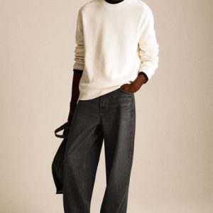 Designed with subtle nods to utility, the Rider jeans are made from chainstitched 13oz organic- and recycled-cotton denim, which is dyed a dark-blue wash. They’re cut in a relaxed, straight-leg shape and feature workwear-inspired topstitching on the back pockets.