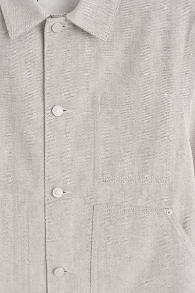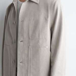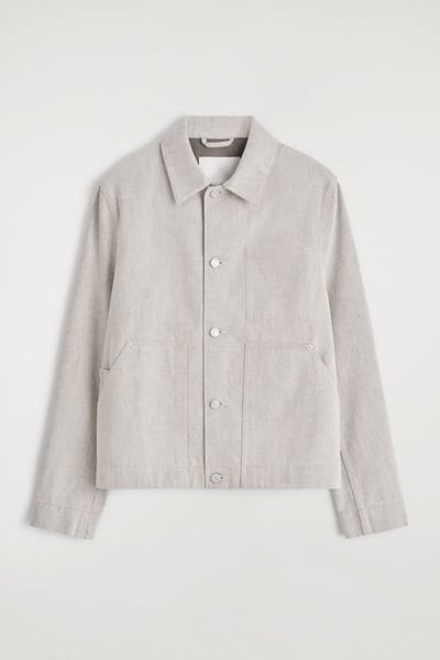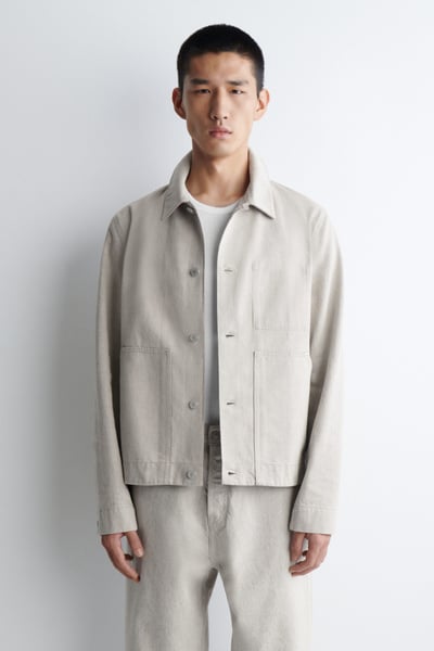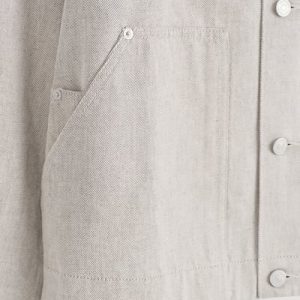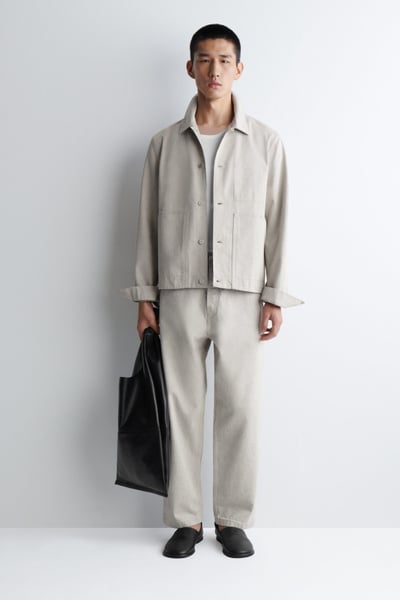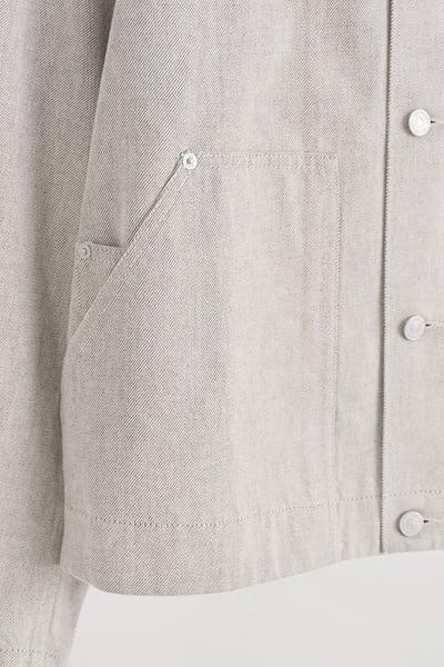Designed with utility-inspired details, this modern jacket features a pointed collar and oversized pockets at the front. The silver-tone hardware complements the nuanced rinse of the denim.