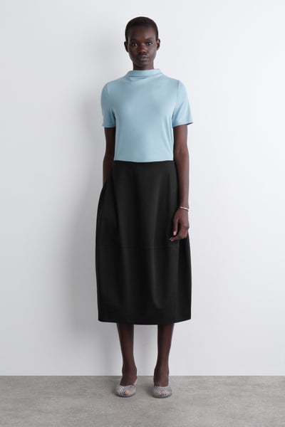 Simple yet impactful silhouettes are the foundation of the COS wardrobe. This refined midi skirt is crafted from a soft cotton blend and cut in a sculptural, curved shape with an elasticized waist and discreet side-seam pockets.