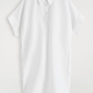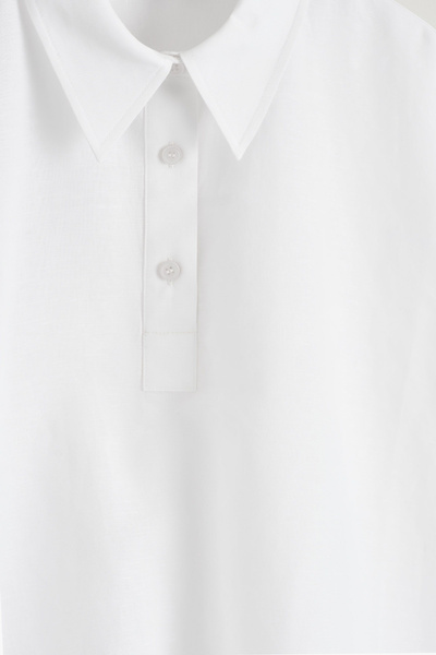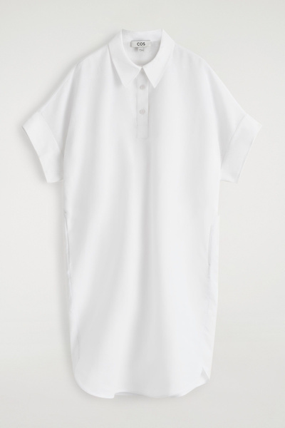 Effortless silhouettes and lightweight fabrics evoke the ease of summer dress codes. Crafted from crisp linen and cotton, this shirt dress is designed with a half-placket, short sleeves, and a modern rounded hem. It features concealed side pockets and a box pleat at the back.