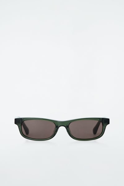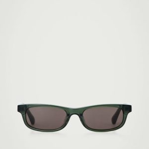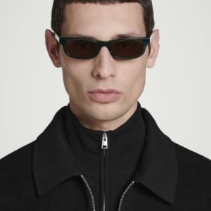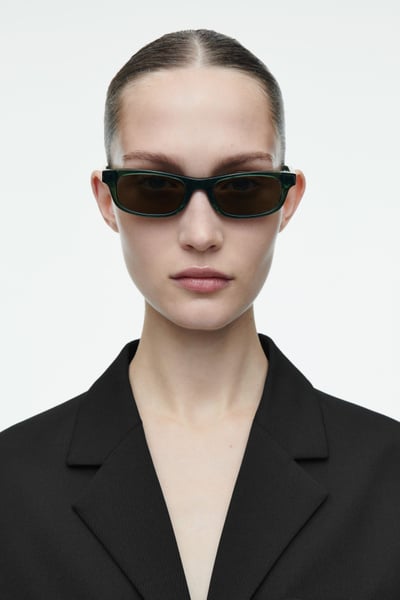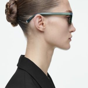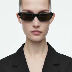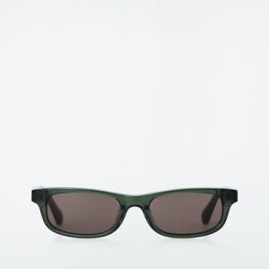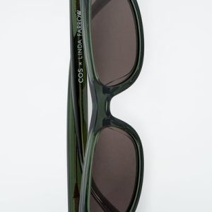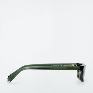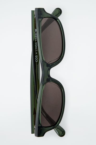 Introducing the LINDA FARROW spring summer 2025 collaboration: new expressions of nostalgic styles that embody a creative spirit – a meeting of timeless and contemporary. Inspired by the slim frames of the ’90s, the Scope sunglasses have an elongated rectangular shape in a translucent green tone that complements the brown tint of the lenses.