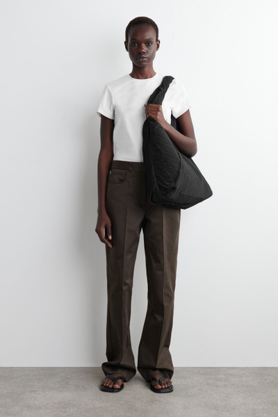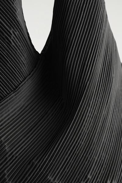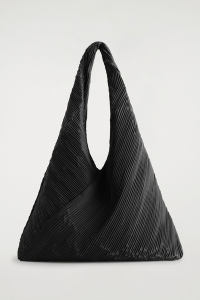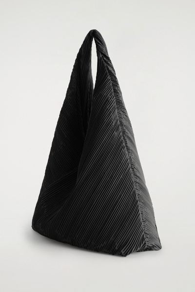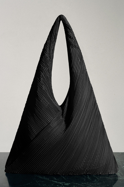 Artfully constructed from textured plissé fabric, this sculptural shoulder bag is defined by its softly folded, triangular silhouette. The integral strap overlaps to create a dipped shape, while a discreet internal zip pocket offers secure storage for daily essentials.