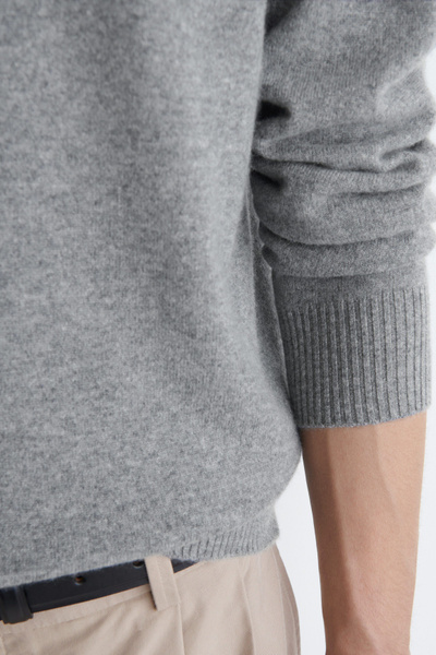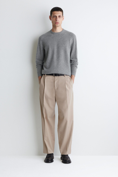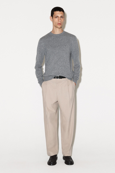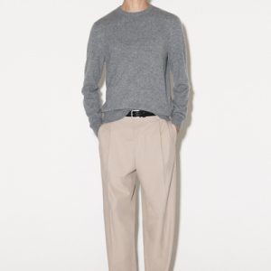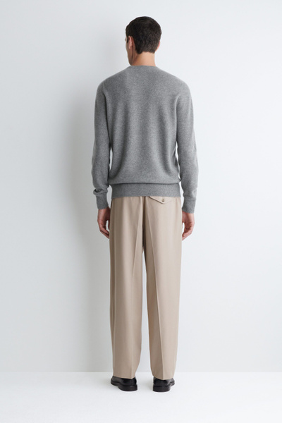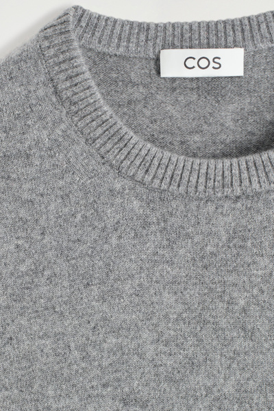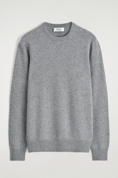 The COS menswear team have designed a wardrobe of premium wardrobe staples for Autumn Winter 2023. Offered in a gray hue, this sweater is crafted from traceable 100% cashmere that has been certified according to the Good Cashmere Standard and has a supremely soft hand feel. It’s cut in our most classic shape and has a crew neck, relaxed shoulders and neat ribbed trims.