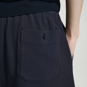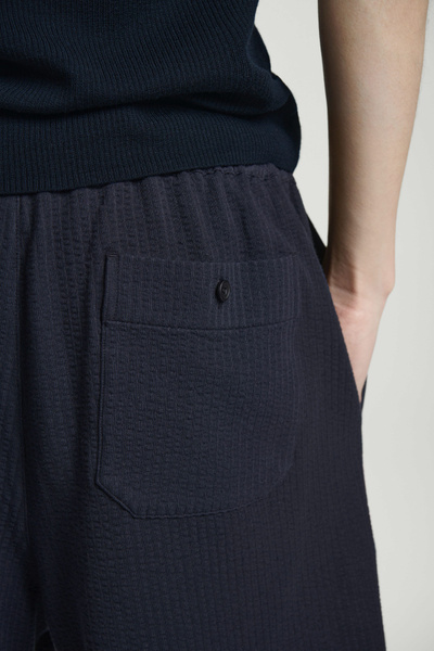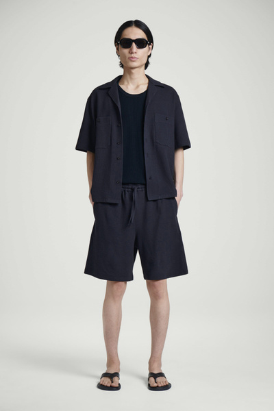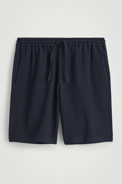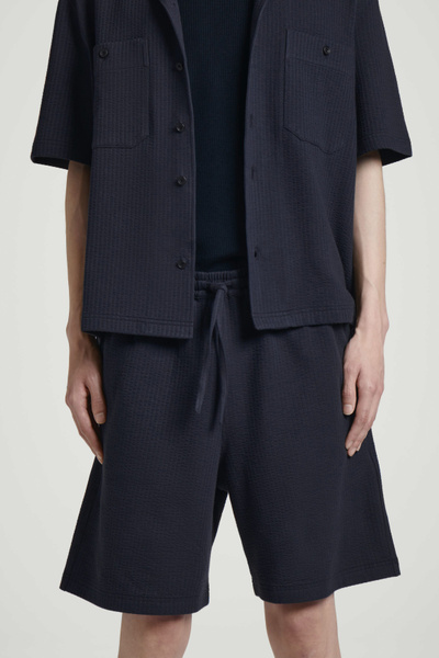 Light fabrics and easy shapes lead the Summer 2025 collection. Rendered in timeless navy, these laid-back shorts are crafted from textured cotton seersucker and have a flexible drawstring waistband and practical pockets at the side and back. Style them with the matching shirt.