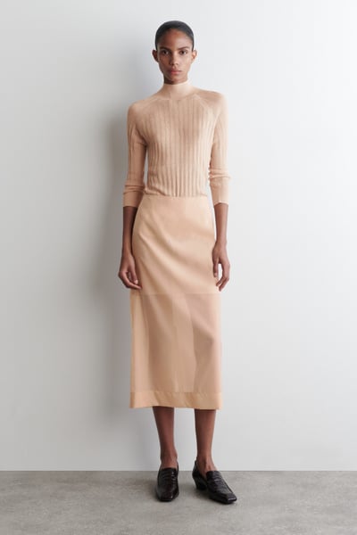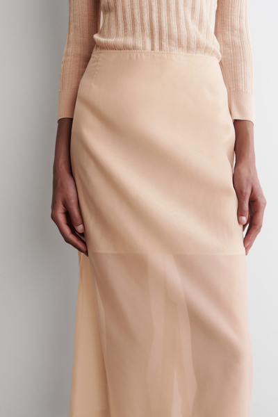The COS womenswear team leans into the sheerness trend for Summer 2025. This modern column skirt is made from gauzy chiffon that shows subtle hints of skin, while the internal skirt provides extra coverage. Style it with tone-on-tone hues.