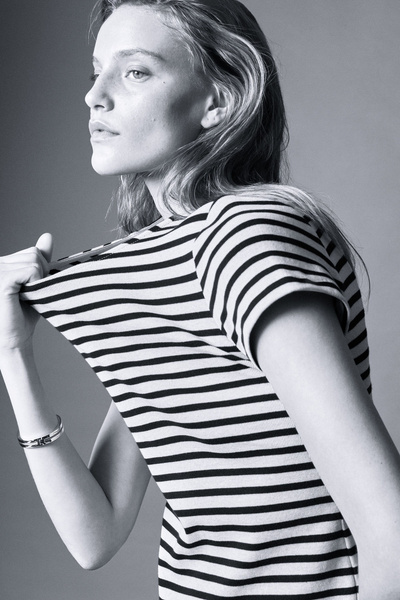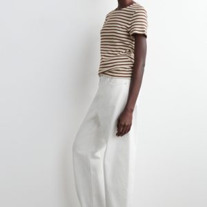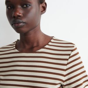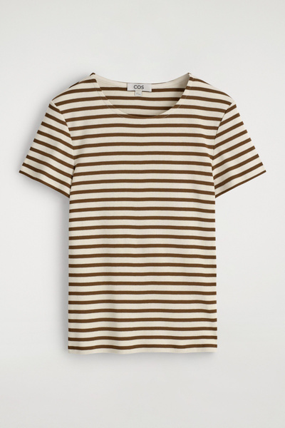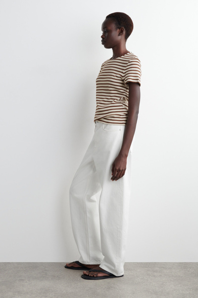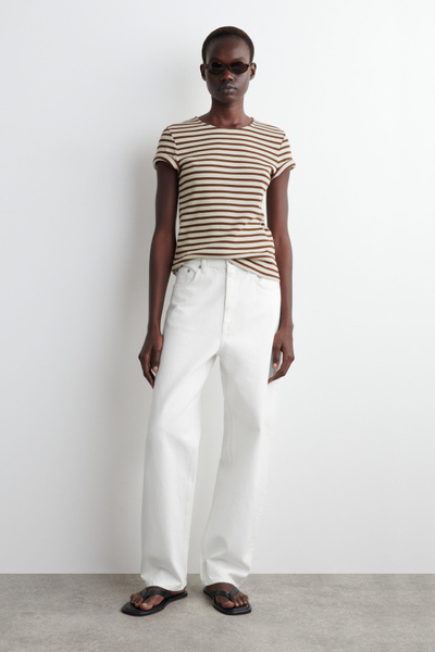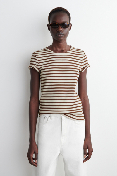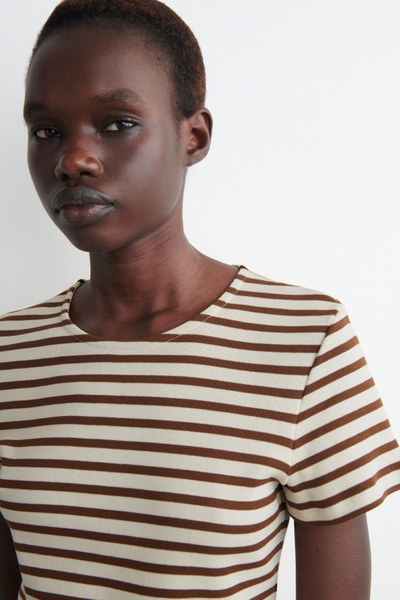 Decorated with slender stripes, this T-shirt is cut in a shrunken shape that nods to the nineties. It’s crafted from soft cotton-jersey and has a round neck and flat-faced seams that give it a clean finish.