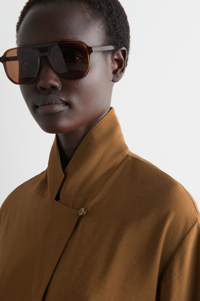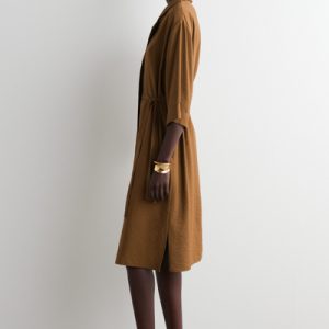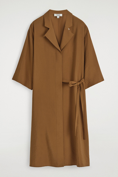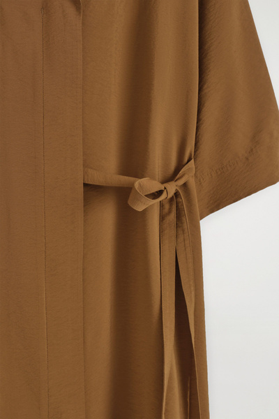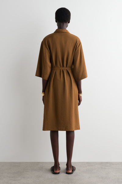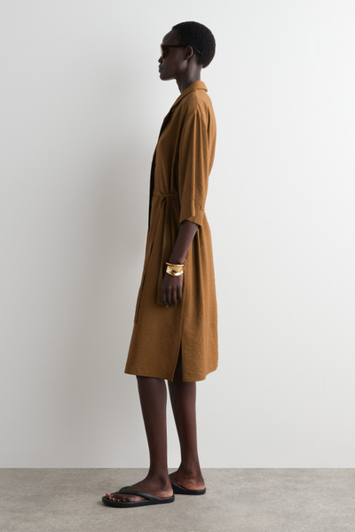 SIDE-BELT MIDI SHIRT DRESS