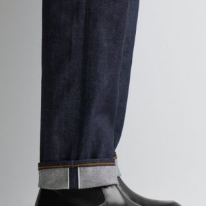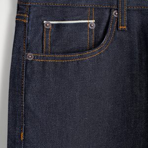 - Selvedge denim, button closure
