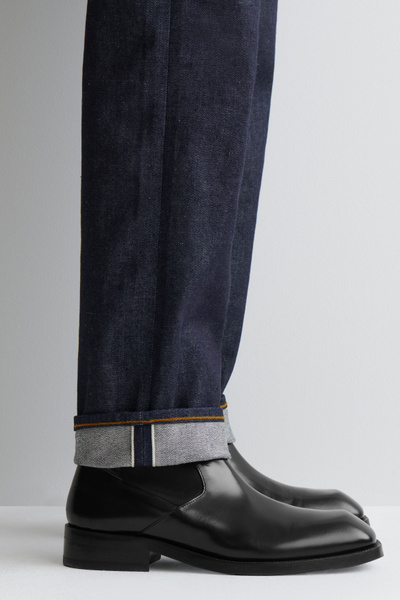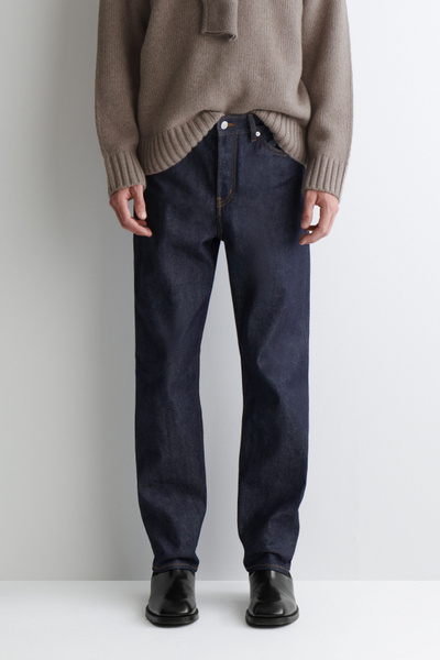 Introducing Wardrobe Essentials: a curation of COS signatures defined for the season. Meet your new everyday jeans. They’re crafted from raw denim that’s weighty and crisp – as the fabric breaks in, it’ll fade, soften and mold to your frame in a way that’s completely unique to you. Shaped for a straight-leg fit, they’re made with premium selvedge finishing that’s visible when the cuffs are rolled. Style them with the matching jacket.