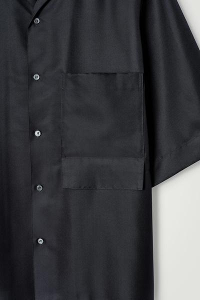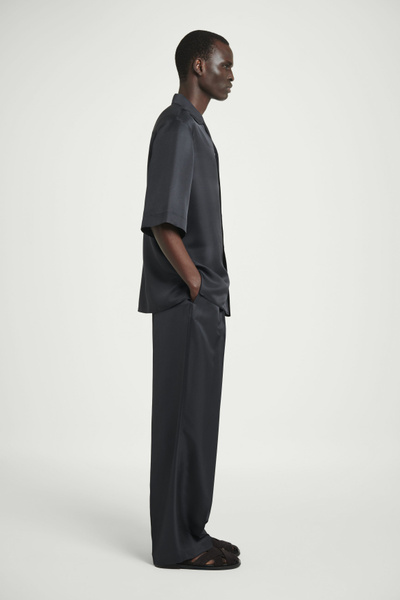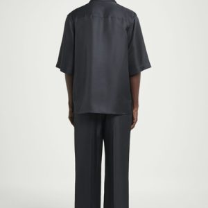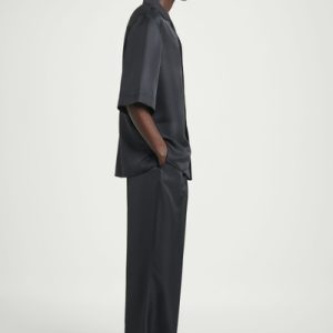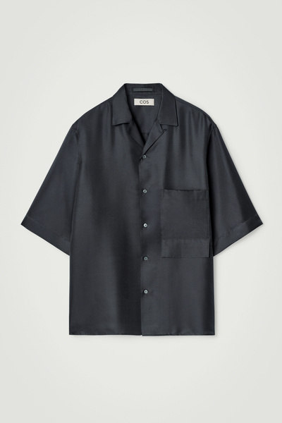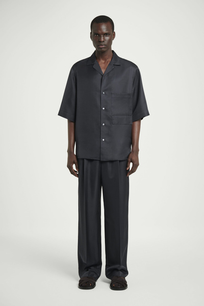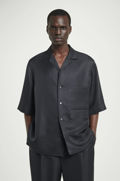 The COS SS25 runway collection builds on the house codes of lasting design and exceptional craftsmanship. Offered in an enduring anthracite tone, this polished resort shirt is made from a 100% mulberry silk cloth, selected for its effortlessly relaxed drape, and closes with refined mother-of-pearl buttons. Style it as a coord with thecoordinating pants.