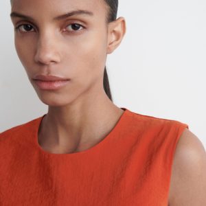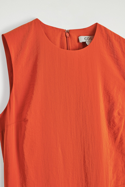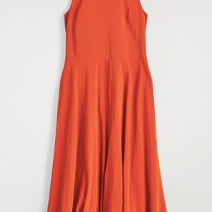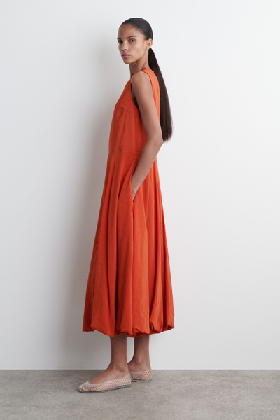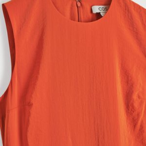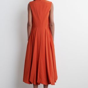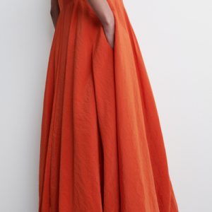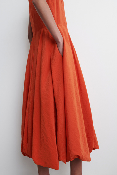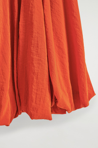 Simple yet impactful, this modern dress is designed in a voluminous bubble-hem silhouette. It’s crafted from a lightweight textured fabric and offered in a vibrant orange hue that lends freshness to the spring/summer wardrobe.