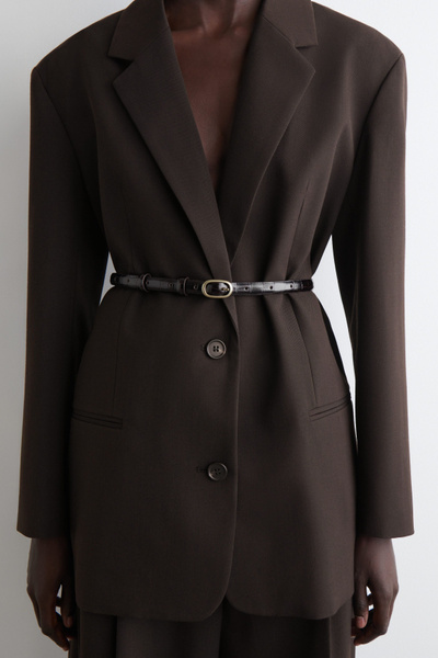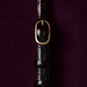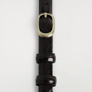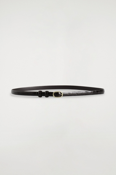 This refined belt is crafted from supple chrome-free leather and embossed with a textural crocodile-effect pattern. It’s designed in a slim silhouette and closes with a sculptural gold-tone oval buckle. Style it with tailoring or denim.