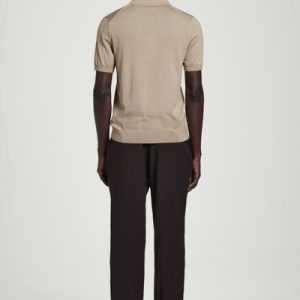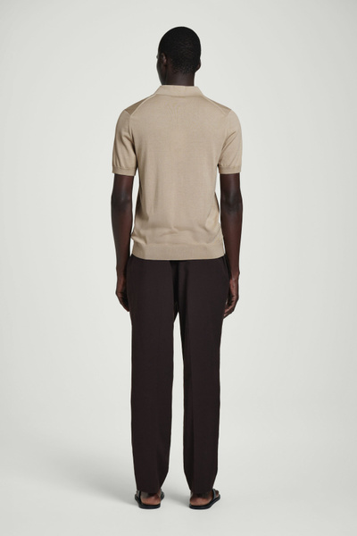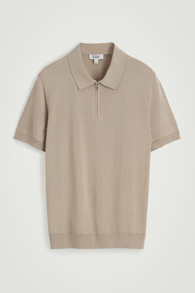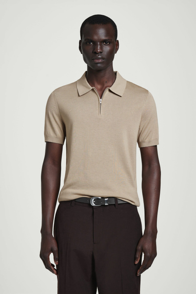 Knitted from a premium recycled mulberry-silk blend, this polo shirt embodies the COS ethos of creating perfected staples. The silver-tone zipper is a modern design detail, while the simple shape and refined mole-beige tone encourage thoughtful styling.