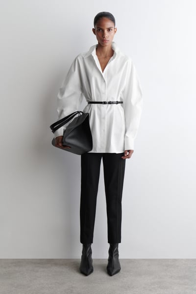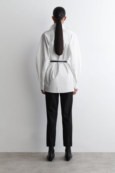 Introducing The Capsule Wardrobe: a seasonal evolution of permanent COS icons. Tapping into the noughties, these cropped pants are crafted from cotton with subtle stretch and are cut to sit at the ankle. They feature a concealed elasticated waist, silver-tone zip, and pressed creases along the front of the slimline legs.