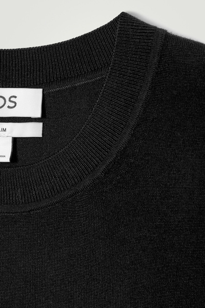 Introducing Wardrobe Essentials: a curation of COS signatures defined for the season. A refined staple, this sweater is crafted from pure merino wool that’s lightweight and soft to the touch. It’s cut in a slim shape and designed with a ribbed crew neck, cuffs and hem. Wear it with jeans or tailoring.