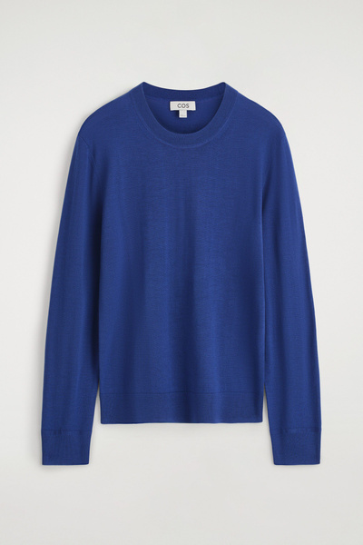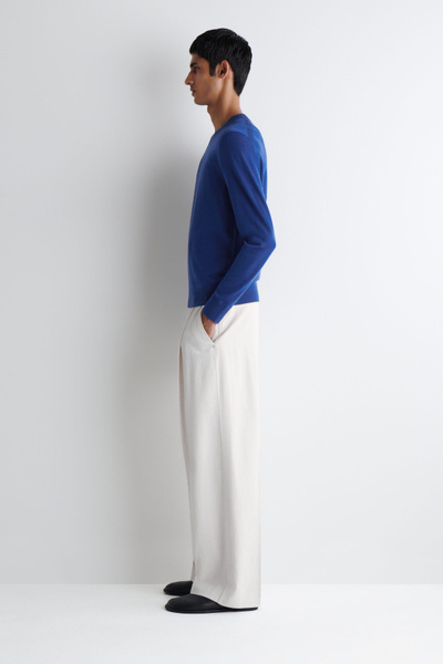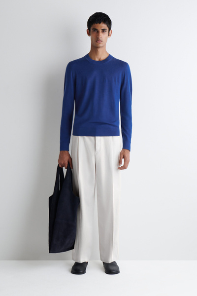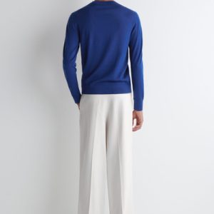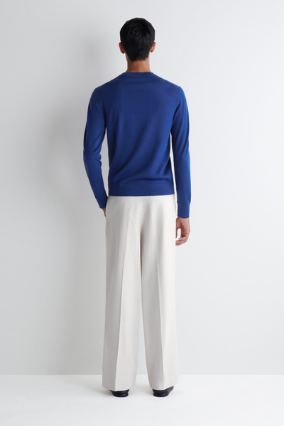 A refined essential, this sweater is crafted from pure merino wool that’s lightweight and soft to the touch. It’s cut in a slim shape and designed with a ribbed crew neck, cuffs and hem. Wear it with jeans or tailoring.