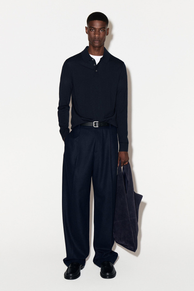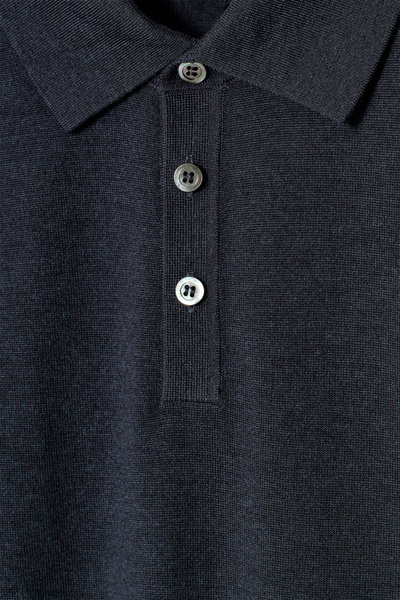 Introducing Wardrobe Essentials: a curation of COS signatures defined for the season. A perfected staple, this long-sleeved polo shirt is knitted from 100% merino wool that has a soft hand feel and is designed with neat seashell buttons and ribbed trims that hold their shape. You’ll reach for it year after year.