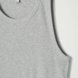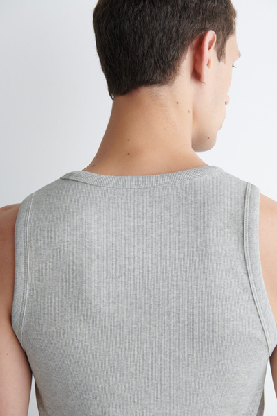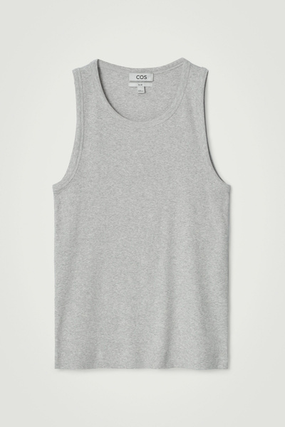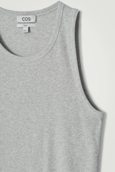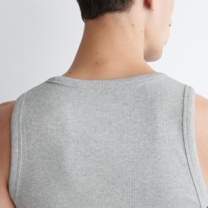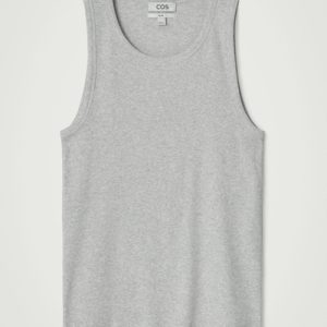 This ribbed tank top is the perfect basic to wear on its own or layered underneath overshirts and cardigans. Spun from soft organic cotton-blend jersey, it’s cut for a slim fit and has a scooped neck and wide armholes for comfort.