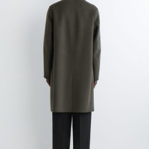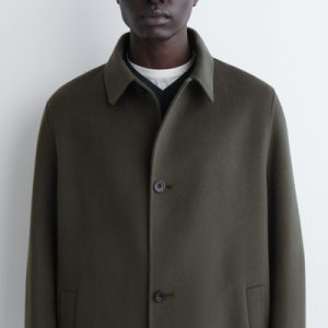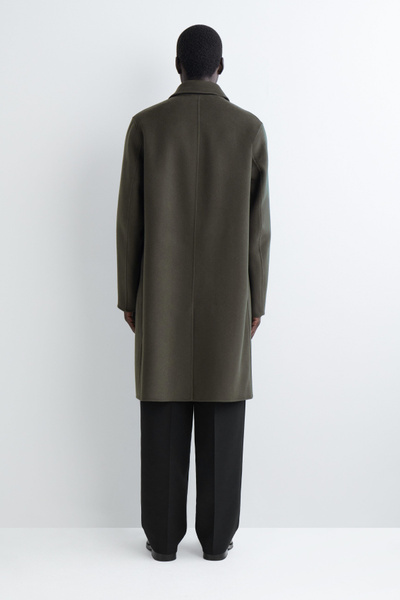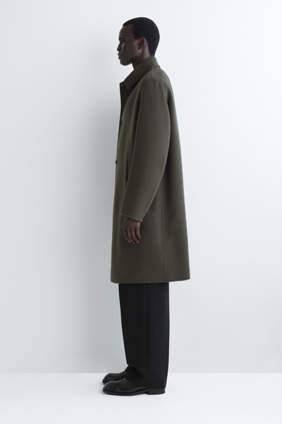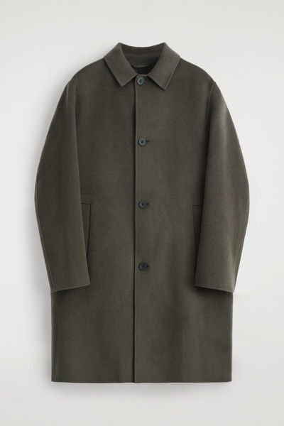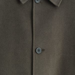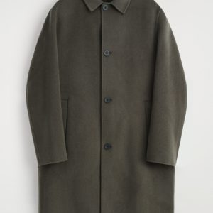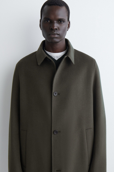 The modern car coat is a tenet of the autumn/winter wardrobe. This piece is crafted from premium split wool that has a substantial hand feel and features a pointed collar, welt pockets and a vent at the back. The dark-khaki hue will style effortlessly with other neutrals.