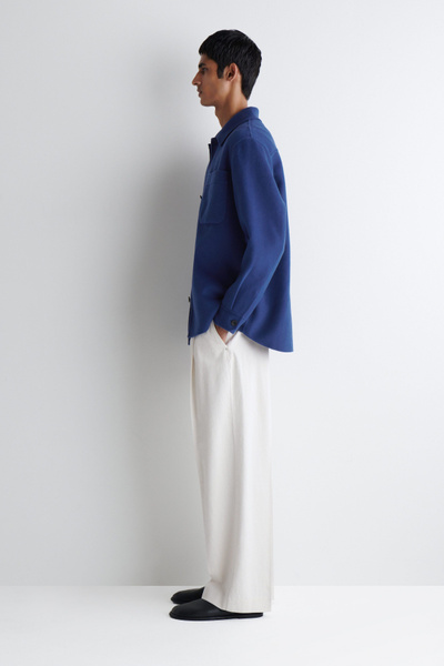 The classic overshirt is a pillar of the transitional wardrobe. Designed for layering, this piece is crafted from premium split wool with TENCEL™ Lyocell for a light yet substantial hand feel. It’s cut in a relaxed shape and finished with a pointed collar, buttoned cuffs and chest patch pocket.