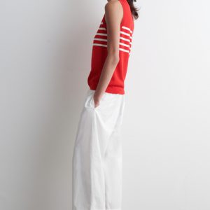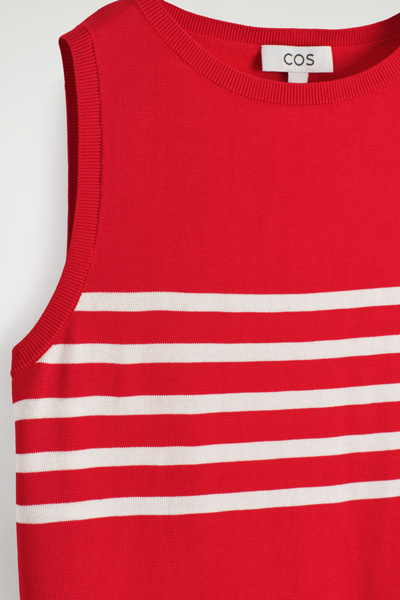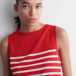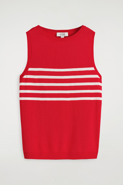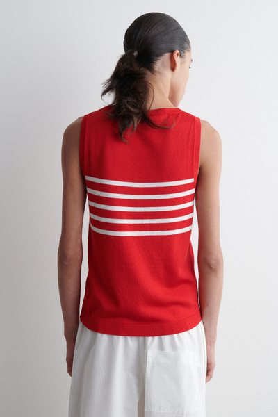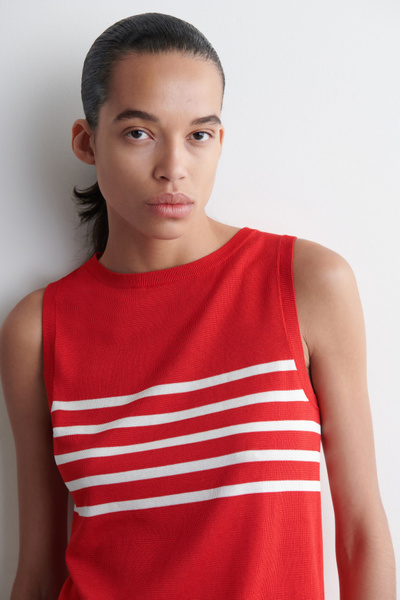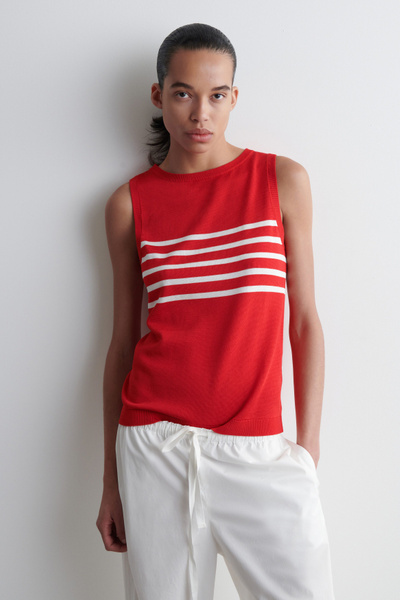 Laid back yet refined, this modern tank top is made from a silky cotton blend that has an effortless drape. It’s patterned with contrasting stripes and shaped with a crew neckline and finely ribbed trims.