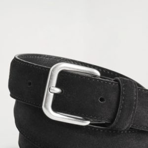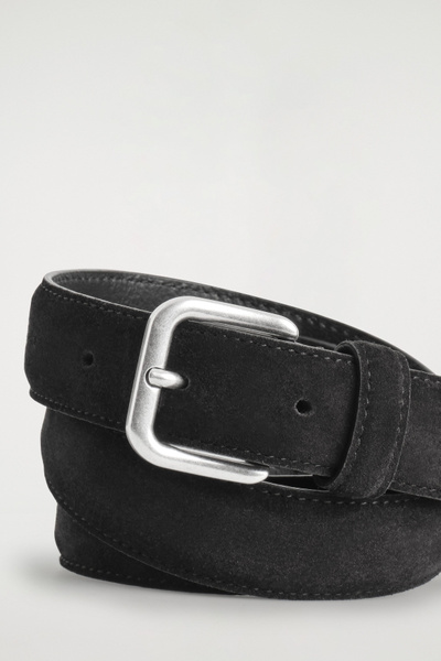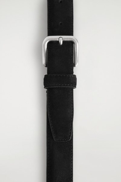 A refined take on the quintessential belt, this piece is expertly crafted from supple suede and rendered in a timeless black hue. It fastens with a silver-tone square buckle.