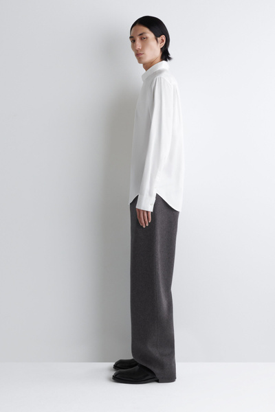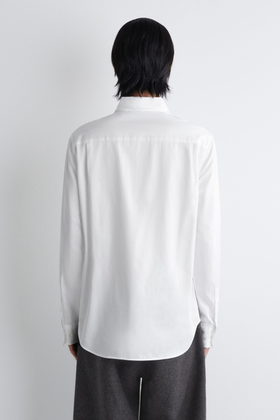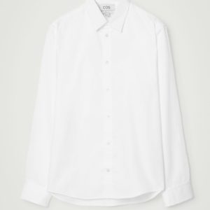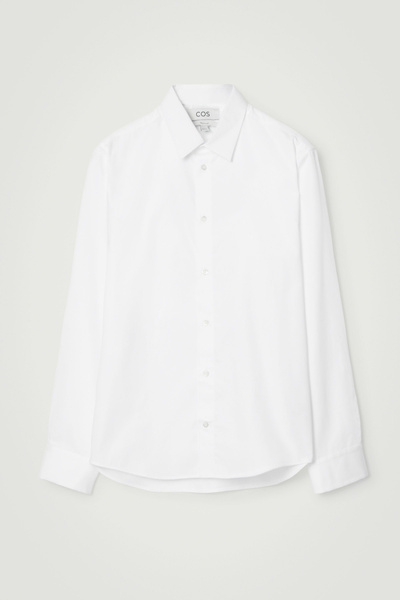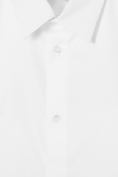 This white organic cotton-poplin shirt is as classic as they come. Designed for a regular fit, it’s tailored with a sharp pointed collar, cuffed long sleeves and a subtly curved back hem that’ll tuck neatly into pants. The tonal buttons and minimal topstitching are streamlined finishing touches.