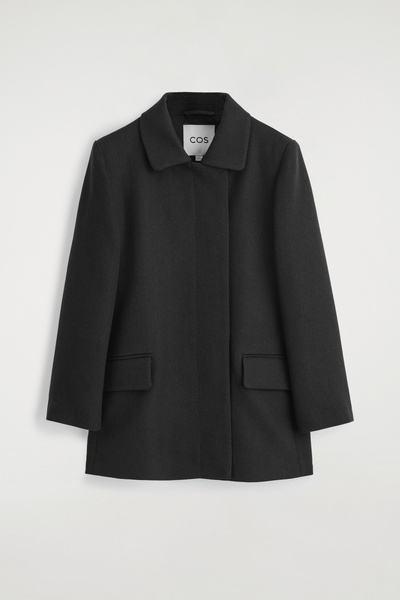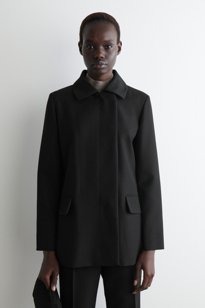 Impeccable tailoring is a cornerstone of the COS womenswear collection. Crafted from premium wool-blend twill, this refined jacket is cut in a clean, straight silhouette and features a pointed collar, welt pockets and a concealed placket.