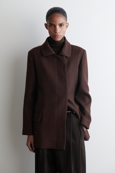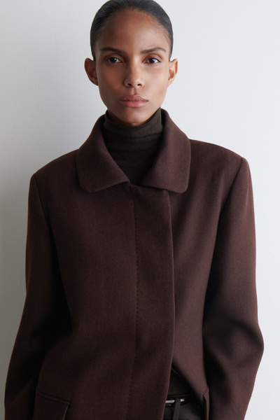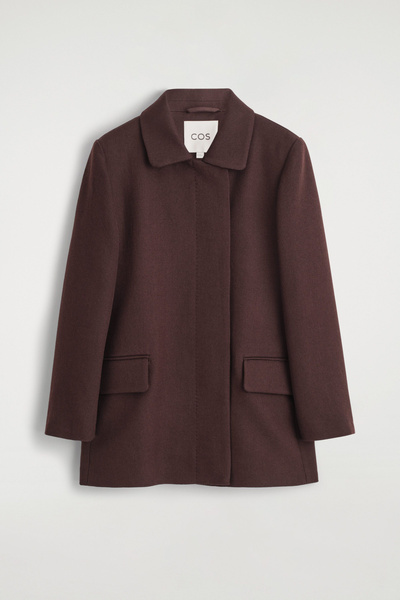 Impeccable tailoring is a cornerstone of the COS womenswear collection. Crafted from premium wool-blend twill, this refined jacket is cut in a clean, straight silhouette and features a pointed collar, welt pockets and a concealed placket.