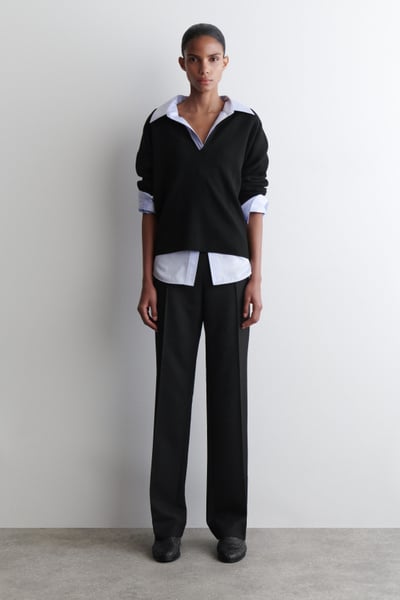 Introducing The Capsule Wardrobe: a seasonal evolution of permanent COS icons. Crafted from a tactile wool blend, these modern pants are tailored in a slim shape through the thigh and have elongated straight legs. They’re designed with subtle welt pockets, smart pressed creases, and a zip closure at the side for a streamlined finish.