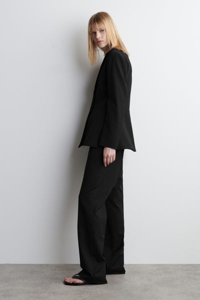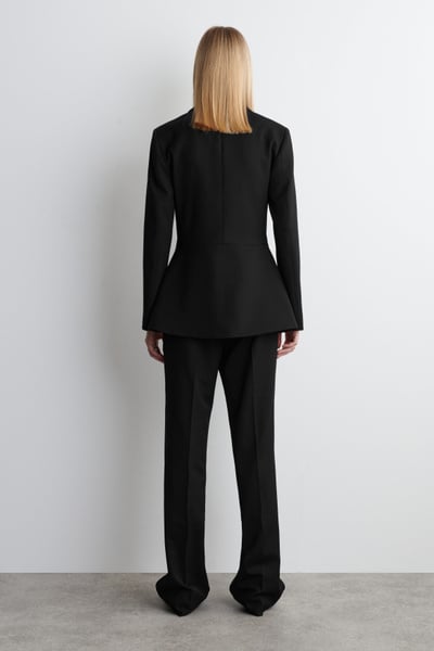 Shell: 54% Recycled polyester, 42% RWS Wool, 4% Elastane. Lining: 100% Cotton. Excluding trims / Dry clean