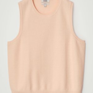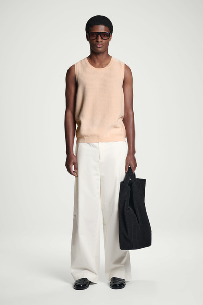 This season, the COS menswear team bring a textural upgrade to classic wardrobe essentials. This laid-back tank top is knitted from cotton using a micro cable-knit stitch and features a ribbed crew neck and tubular seams.