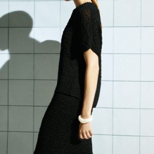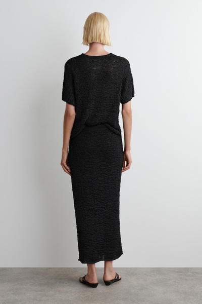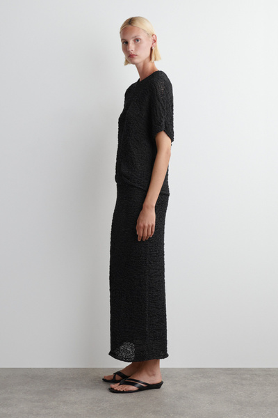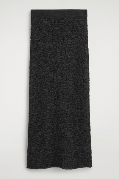 Innovative craft and rich texture lead the womenswear collection this season. This modern midi skirt is made from tactile yarn that’s open-knitted for a slightly sheer look and cut in a straight silhouette with an elastic waistband. Style it with the coordinating top.